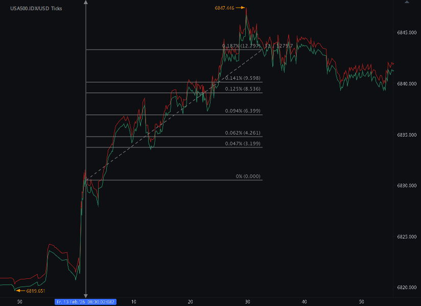 According to our analysis USDJPY and EURUSD moved 16 pips and US500 moved 12 points on US BLS Consumer Price Index (CPI) data on 13 February 2026.